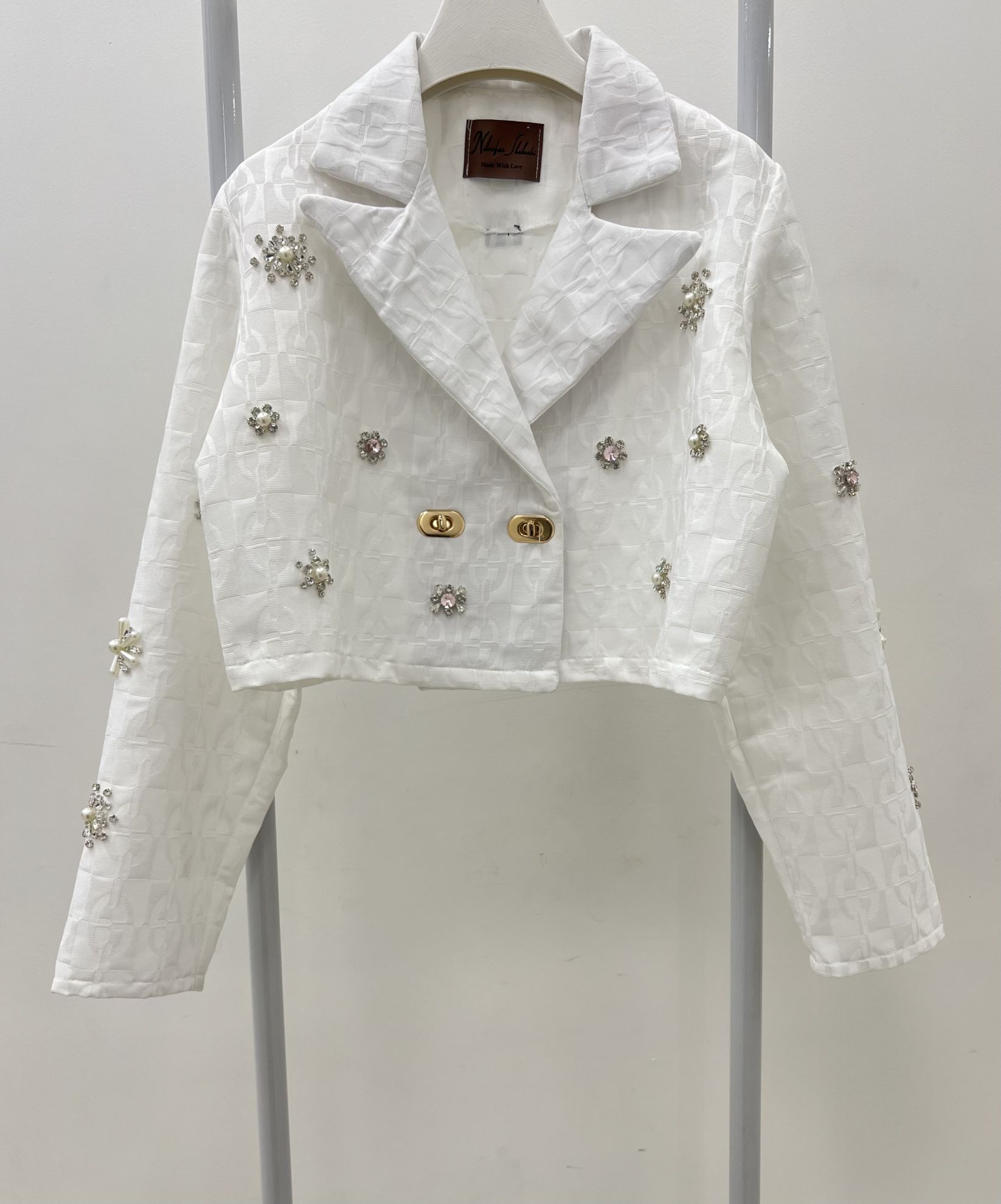 شهرابی کت ژاکارد جواهر دوزی سفید