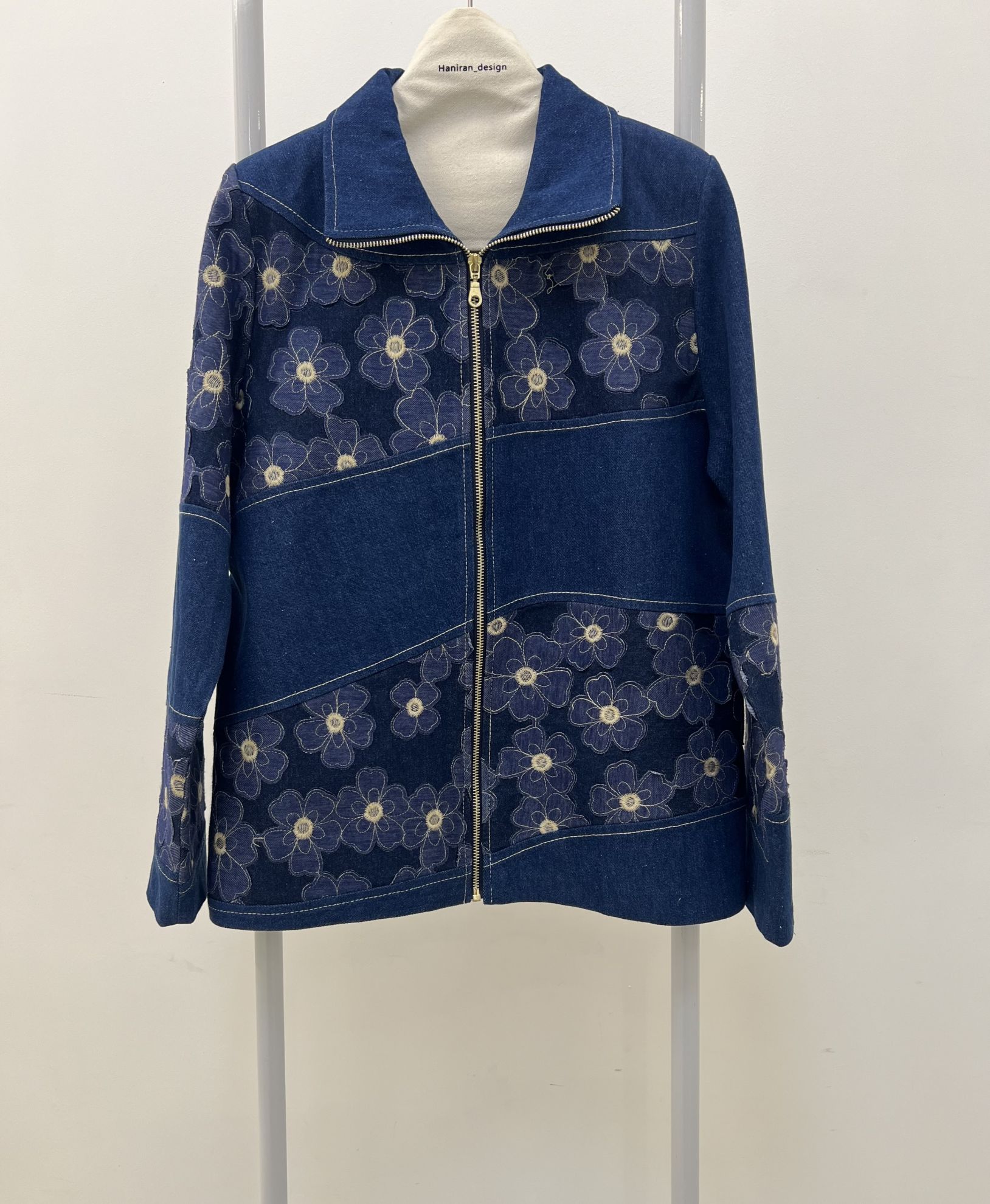 کت جین گل برجسته زیپدار